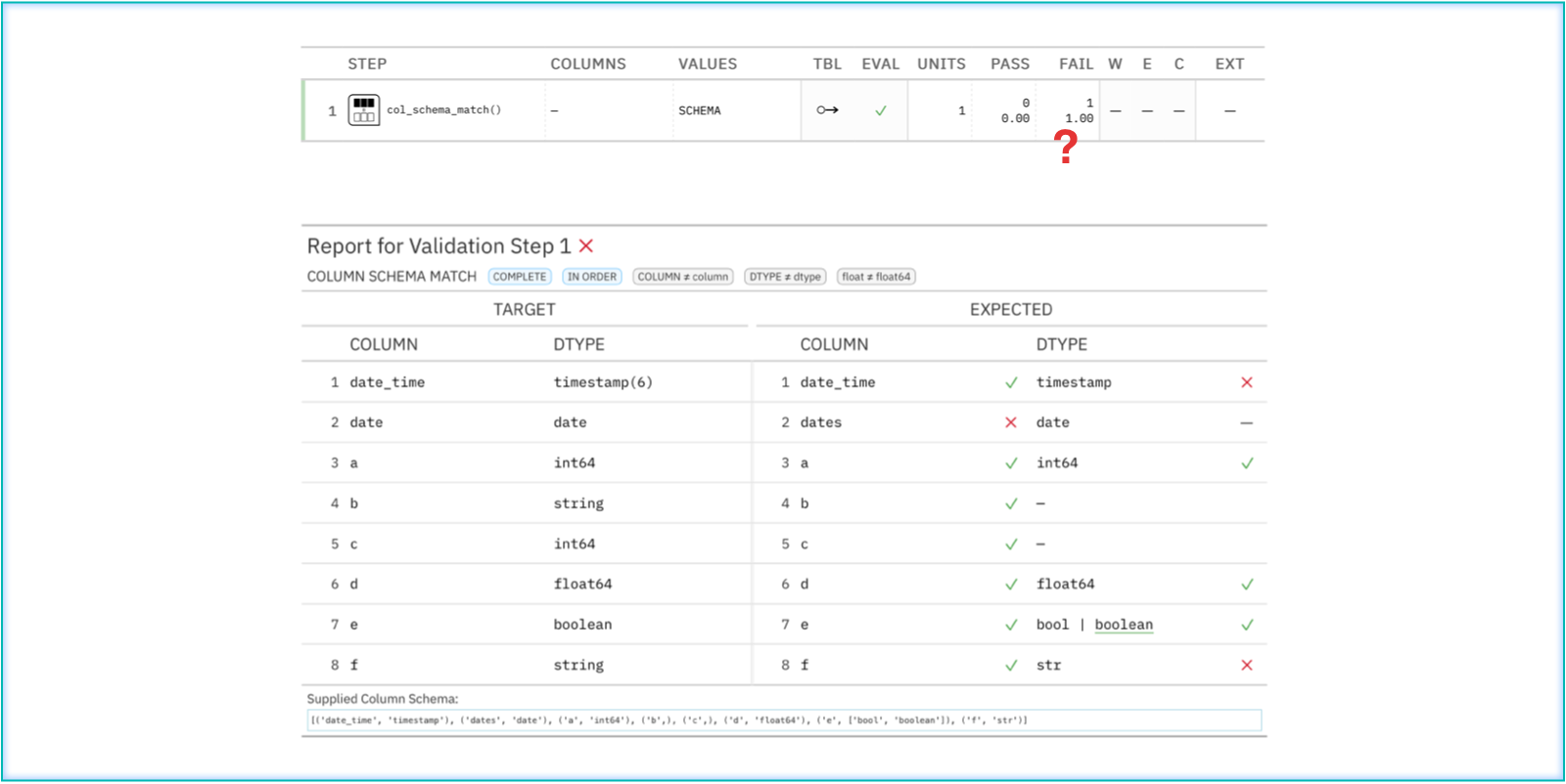The schema of a table can be flexibly defined with Schema and verified with col_schema_match().